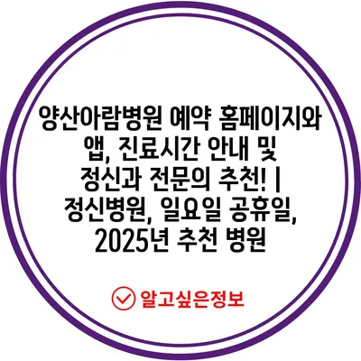 양산아람병원 예약 홈페이지와 앱, 진료시간 공지 및 정신과 전연락 추천! | 정신병원, 일요일 공휴일, 2025년 추천 병원에 대해 자주 묻는 질문 TOP 5