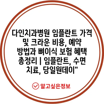 다인치과병원 임플란트 가격 및 크라운 비용, 예약 방법과 뼈이식 보험 혜택 총정리 | 임플란트, 수면 치료, 당일원데이” 에 대해 자주 묻는 질문 TOP 5