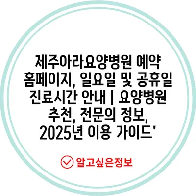 ✅ 2025년 제주아라요양병원의 진료시간과 예약 방법을 알아보세요.
