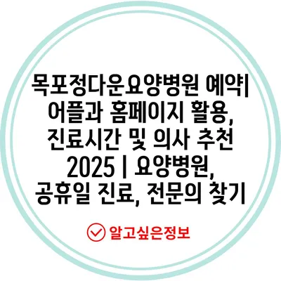 목포정다운요양병원 예약| 어플과 홈페이지 활용, 진료시간 및 의사 추천 2025 | 요양병원, 공휴일 진료, 전연락 찾기