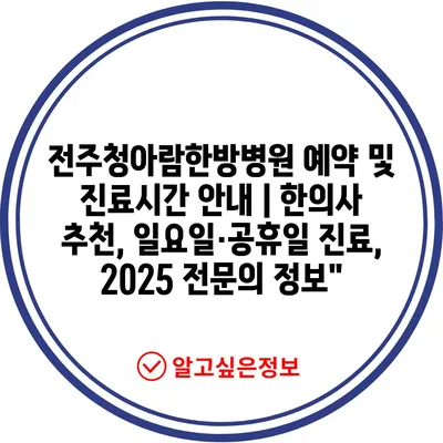 전주청아람한방병원 예약 및 진료시간 안내 | 한의사 추천, 일요일·공휴일 진료, 2025 전문의 정보”