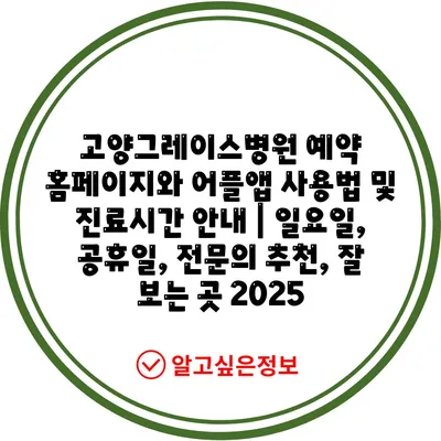 ✅ 고양그레이스병원 예약 방법과 진료 시간을 한눈에 확인하세요.