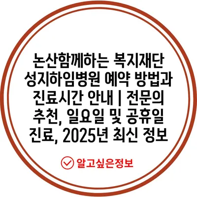 논산함께하는 복지재단 성지하임병원 예약 방법과 진료시간 공지 | 전연락 추천, 일요일 및 공휴일 진료, 2025년 최신 정보 에 대해 자주 묻는 질문 TOP 5
