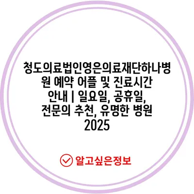 청도의료법인영은의료재단하나병원 예약 어플 및 진료시간 공지 | 일요일, 공휴일, 전연락 추천, 유명한 병원 2025 에 대해 자주 묻는 질문 TOP 5