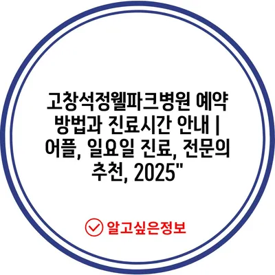 고창석정웰파크병원 예약 방법과 진료시간 공지 | 어플, 일요일 진료, 전연락 추천, 2025″ 에 대해 자주 묻는 질문 TOP 5