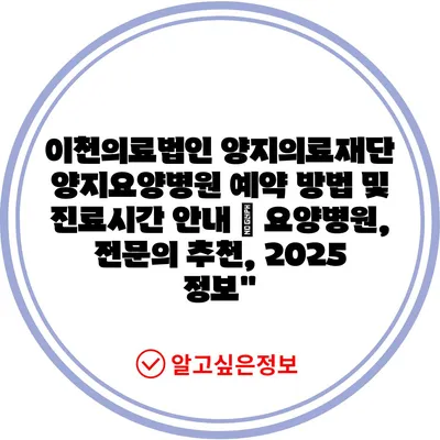 이천의료법인 양지의료재단 양지요양병원 예약 방법 및 진료시간 공지 | 요양병원, 전연락 추천, 2025 정보에 대해 자주 묻는 질문 TOP 5