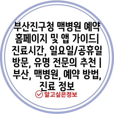 부산진구청 맥병원 예약 홈페이지 및 앱 설명서| 진료시간, 일요일/공휴일 방문, 유명 전연락 추천 | 부산, 맥병원, 예약 방법, 진료 정보