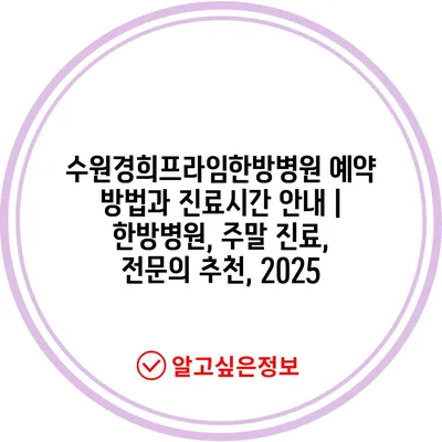 수원경희프라임한방병원 예약 방법과 진료시간 공지 | 한방병원, 주말 진료, 전연락 추천, 2025 에 대해 자주 묻는 질문 TOP 5