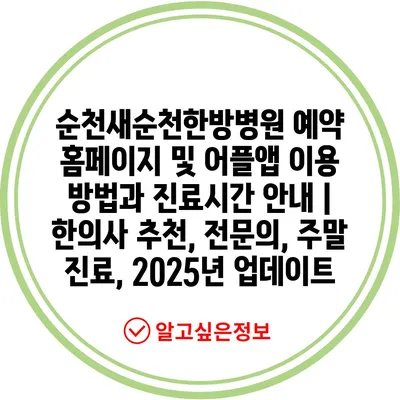 순천새순천한방병원 예약 홈페이지 및 어플앱 이용 방법과 진료시간 공지 | 한의사 추천, 전연락, 주말 진료, 2025년 업데이트 에 대해 자주 묻는 질문 TOP 5