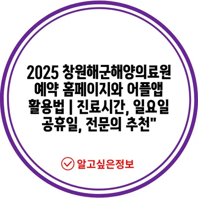 ✅ 2025 창원해군해양의료원의 진료시간과 예약 방법을 알아보세요.