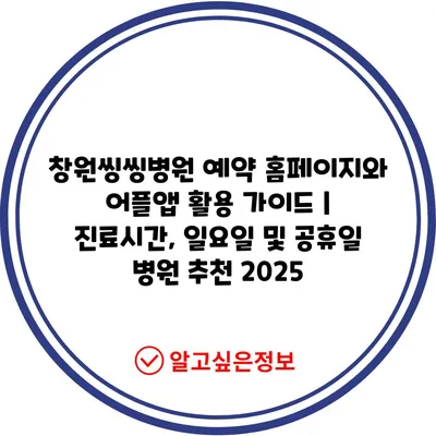 창원씽씽병원 예약 홈페이지와 어플앱 활용 설명서 | 진료시간, 일요일 및 공휴일 병원 추천 2025에서는 병원 예약을 보다 간편하게 하는 방법을 소개합니다.