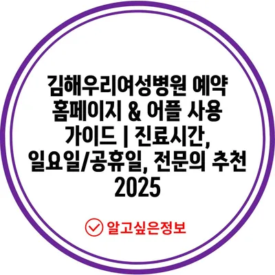 ✅ 김해우리여성병원의 예약 방법과 진료 정보를 한눈에 확인하세요.