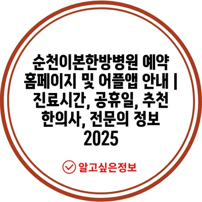 ✅ 순천이본한방병원의 진료시간과 공휴일 정보를 자세히 확인해 보세요.