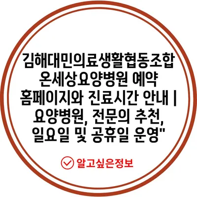 ✅ 김해대민의료생활협동조합의 진료시간과 예약 방법을 알아보세요.