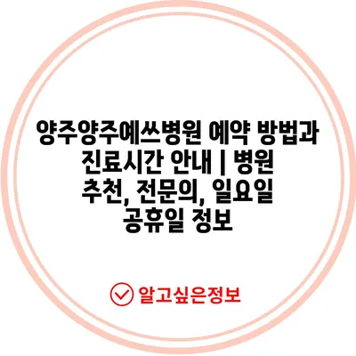 ✅ 양주양주예쓰병원의 예약 방법과 진료시간을 지금 바로 알아보세요.