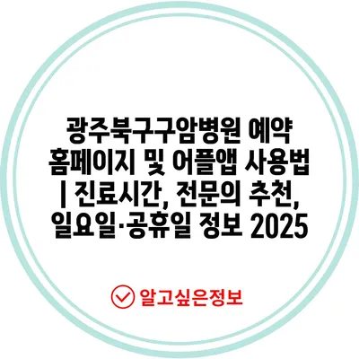 광주북구구암병원 예약 홈페이지 및 어플앱 사용법 | 진료시간, 전연락 추천, 일요일·공휴일 정보 2025