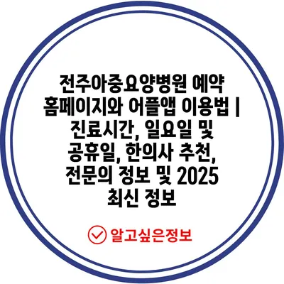 전주아중요양병원 예약 홈페이지와 어플앱 이용법 | 진료시간, 일요일 및 공휴일, 한의사 추천, 전연락 정보 및 2025 최신 정보 에 대해 자주 묻는 질문 TOP 5
