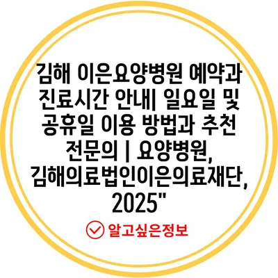 김해 이은요양병원 예약과 진료시간 공지| 일요일 및 공휴일 이용 방법과 추천 전연락 | 요양병원, 김해의료법인이은의료재단, 2025″ 에 대해 자주 묻는 질문 TOP 5