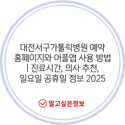 대전서구가톨릭병원 예약 홈페이지와 어플앱 사용 방법 | 진료시간, 의사 추천, 일요일 공휴일 정보 2025에 대해 자주 묻는 질문 TOP 5