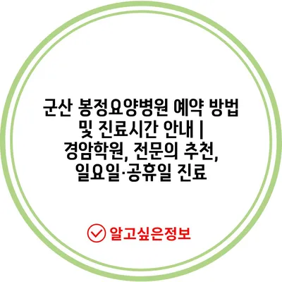 ✅ 군산 봉정요양병원 예약 방법을 자세히 알아보세요!