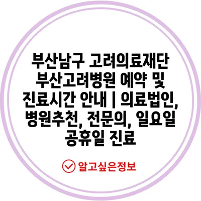 ✅ 부산고려병원의 예약 방법과 진료 시간을 알아보세요.