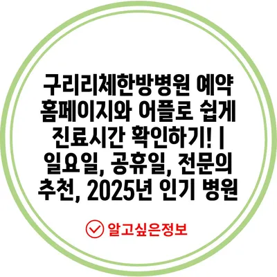 구리리체한방병원 예약 홈페이지와 어플로 쉽게 진료시간 확인하기! | 일요일, 공휴일, 전연락 추천, 2025년 인기 병원에 대해 자주 묻는 질문 TOP 5
