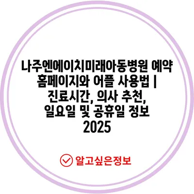 나주엔에이치미래아동병원 예약 홈페이지와 어플 사용법 | 진료시간, 의사 추천, 일요일 및 공휴일 정보 2025에 대해 알아보겠습니다.