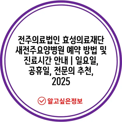 전주의료법인 효성의료재단 새전주요양병원 예약 방법 및 진료시간 공지 | 일요일, 공휴일, 전연락 추천, 2025 에 대해 자주 묻는 질문 TOP 5