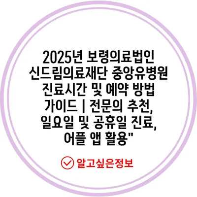 2025년 보령의료법인 신드림의료재단 중앙유병원 진료시간 및 예약 방법 설명서 | 전연락 추천, 일요일 및 공휴일 진료, 어플 앱 활용