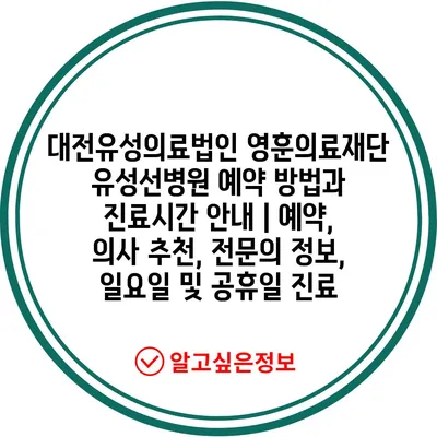 ✅ 대전유성의료법인의 전문의 정보와 예약 시스템을 지금 바로 알아보세요!