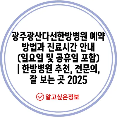 광주광산다선한방병원 예약 방법과 진료시간 공지 (일요일 및 공휴일 포함) | 한방병원 추천, 전연락, 잘 보는 곳 2025 에 대해 자주 묻는 질문 TOP 5