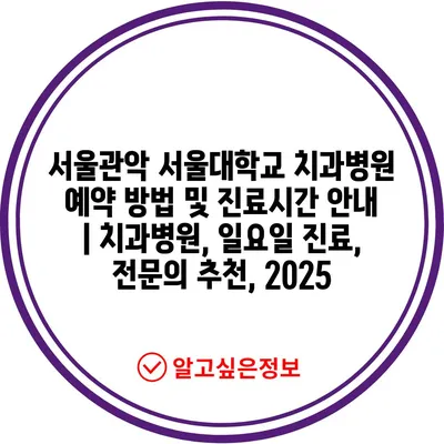 서울관악 서울대학교 치과병원 예약 방법 및 진료시간 공지 | 치과병원, 일요일 진료, 전연락 추천, 2025 에 대해 자주 묻는 질문 TOP 5