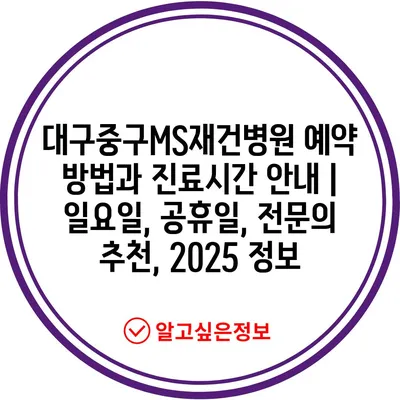 대구중구MS재건병원 예약 방법과 진료시간 공지 | 일요일, 공휴일, 전연락 추천, 2025 정보 에 대해 자주 묻는 질문 TOP 5