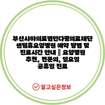 부산사하의료법인다평의료재단 센텀휴요양병원 예약 방법 및 진료시간 공지 | 요양병원 추천, 전연락, 일요일 공휴일 진료 에 대해 자주 묻는 질문 TOP 5