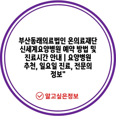 부산동래의료법인 온의료재단 신세계요양병원 예약 방법 및 진료시간 공지 | 요양병원 추천, 일요일 진료, 전연락 정보