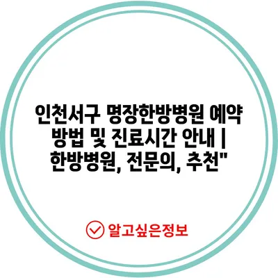 ✅ 인천서구 명장한방병원의 예약 방법을 지금 바로 알아보세요!